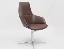 loungechair "Aston" för Arper Italien, brunt skinn, kromad fyrpassformad fot