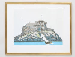 färglitografi 104/330, "Dalarö skans", signerad, 39x51, rammått 54x67