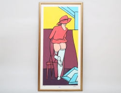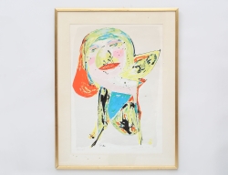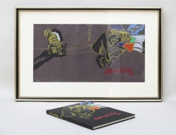 färglitografi 2/100, katt och liggande kvinna, motivet omslagsbild till boken Corneille Aujourd ´ hui, bok medföljer, signerad -78, bildmått 28x55, rammått 47x74
