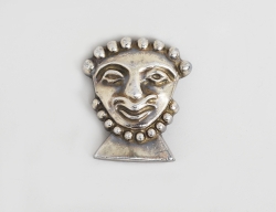 brosch i form av ansikte, för Firma Svenskt tenn, försilvrat tenn, 4x3,5