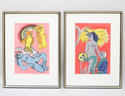 färglitografi 2 stycken, "Apprehension" 120/120, "Fåglarnas dans" 120/120, signerad, bladmått 39,5x27, 59x45