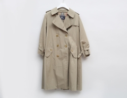 trenchcoat/rock, a-linje formad, dubbel knäppning, sprund baktill, unisex modell, ca storlek M, rygglängd 100 (smärre brukslitage, smärre fläck på baksidan vid sprund nedtill)