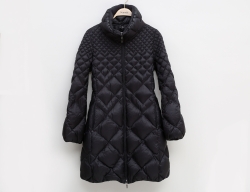 lättvikts dunjacka, svart quiltad, skärp i midjan med spänne i metall, bra bruksskick, storlek 2 (upphängningen med skada)