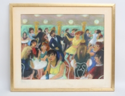 pastell, danssalong med festfolk, signerad, 38x48, rammått 52x62