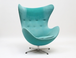 snurrfåtölj "Ägget", Fritz Hansen 0164, etikettmärkt, höjd ca. 106, bredd 80 (bruksslitage,färgskiftningar, mycket torr stoppning)