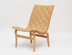 formgiven 1941, tillverkad 1941, signerad BM 1941 på pappersetikett, även stämpelmärkt, stomme av böjträ i bok, klädsel av beige sadelgjord, orört originalskick, höjd 80, bredd 50 (obetydligt bruksslitage)
