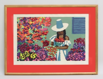 färglitografi 194/360, signerad, bildmått 42x64, rammått 67x88 (något blekt)