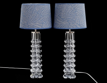 Carl Fagerlund 1900-talets andra hälft, klarglas med slipad dekor, signerade, textilskärmar, höjd 44 (57)