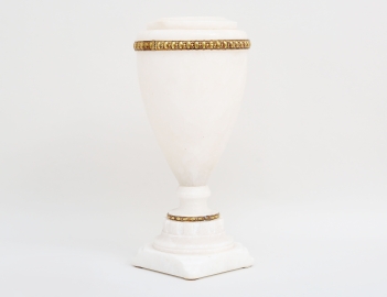 urnformad, alabaster med stansad mässingsdekor, höjd 39