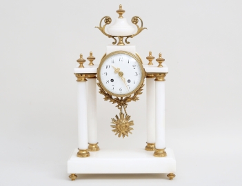 Paris Frankrike 1900-talets mitt, J.Chardon et petits fils, hög kvalité, vit marmor, ornamenterad mässing, höjd 29, bredd 24