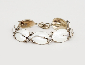 Danmark 1970-tal, sterlingsilver samt emalj, quilloché emaljering på kalla-liljor, längd 16 (en silverdekordel saknas)