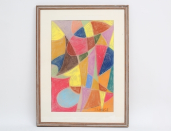 pastell, abstrakt komposition i färgstarka färger, signerad, 46x31, rammått 61x46