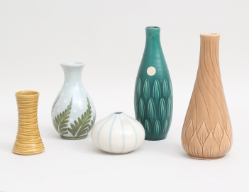 vas Edward Dahlskog, märkt ED, höjd 20, vas etikettmärkt, höjd 20, vas märkt BV, höjd 14, vas "Pumpa", etikettmärkt, höjd 7, vas höjd 10 (5)