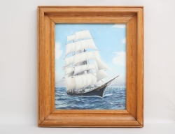 marinmålning "Cutty Sark" på havet, monterad i kraftig träram bakom glas, signerad, rammått 66x57
