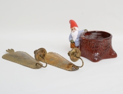 glaserad keramik, höjd 17 (smärre mynningsnagg), vägglampetter 1 par, märkta C&N Svängst, mässing, höjd 34 (3)