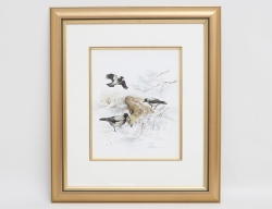 akvarell, kråkor i vinterlandskap, signerad, 25,5x20,5, rammått 47x41