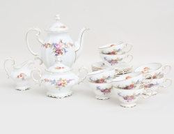 kaffeservis 26 delar "Maria", blå blomsterdekor, 6 tekoppar med fat "Classic Rose", höjd 6/5,5