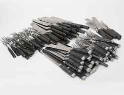 50 stycken, 1800-talets första hälft, tretenade gafflar, matbestick 38 stycken, 1800-talets andra hälft, tretenade gafflar, matbestick 6 stycken c.1900, samtliga trähandtag och kolstål