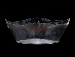 glas med etsad dekor, oval form troligen insats till jardinjär, höjd 13,5, bredd 37x17