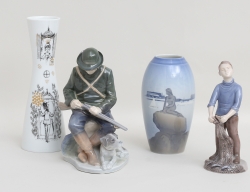 figurin och vas Bing & Gröndahl, höjd 19, figurin Royal Copenhagen, höjd 21,5, vas Björn Wiinblad, Studioline Rosenthal Tyskland, höjd 25,5