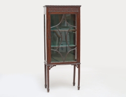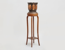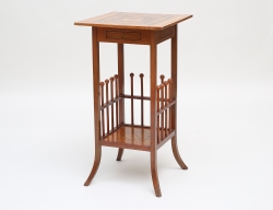 England tidigt 1900-tal, mörkbetsat trä, två hyllplan, filtklädsel, höjd 141, bredd 59, djup 30 (dekorsprickor)