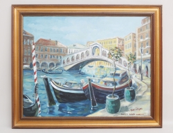 oljemålning på duk, "Ponte DI Rialto - Venezia", signerad, 58x74, rammått 71x86