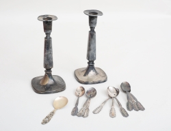 signerad T. Eldh, Ceson Göteborg 1962, höjd 18, 9 kaffeskedar modell Carmen, GAB 1987, sked Norge, 108 gram exklusive ljusstakar