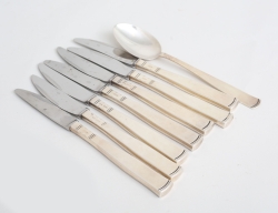 7 bordsknivar samt matsked, Jacob Ängman GAB 1980-tal, vikt 40 gram exklusive knivar (8)