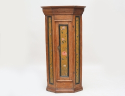 tidigt 1800-tal, delvis dekormåleri, tre hyllplan, originallås och nyckel, höjd 137, bredd 72, djup 52 (smärre kompletteringar)