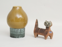 figurin katt, stengods, etikettmärkt, längd 11,5, vas stengods, höjd 17 (2)