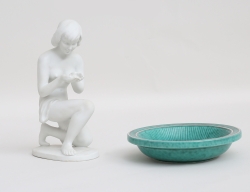 Wilhelm Kåge Gustavsberg, diameter 15,5, figurin Kurt Steiner, Wallendorf, parian, signerad i godset, höjd 20 (2)