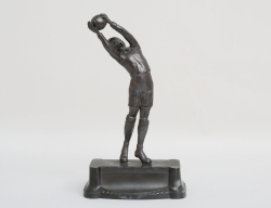 mörkpatinerad metall, i form av bollspelande man, höjd 26