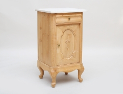 furu, lös vit marmorskiva, en låda, dörrblad med skuren dekor, ett hyllplan, dragknoppar i mässing, höjd 78, bredd 42, djup 39