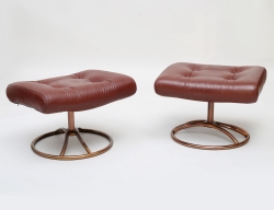 1900-talets andra hälft, rödbrunt skinn, runt metallstativ, snurrbara, höjd 38, bredd 55x45 (bruksslitage)