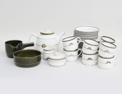 Jackie Lynd Rörstrand, höjd 6,5 (en extra kopp), karott och såskanna "Rebekka" Gefle, höjd 6/9