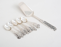 tårtspade Ceson Göteborg 1967, 12 kaffeskedar modell Rosen, Gewe Malmö 1940-tal, längd 9, vikt 142 gram