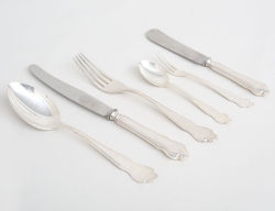 modell Disa, Markströms Uppsala 1950-tal, hela dussin av gaffel, kniv, sked, kaffesked, 2 smörknivar, 6 smågafflar, vikt 1092 gram exklusive knivar