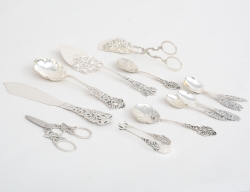 kaktång, kakspade, tårtkniv, 2+1 skedar, 6 kaffeskedar Norge, druvsax, sockertång, vikt 258 gram exklusive druvsax
