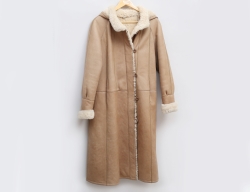 FINN FANT Satanahka OY, fårskinn, avtagbar kapuschong, etikettmärkt, oanvänd, storlek 36 men passar 38/40, rygglängd 113