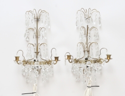 1900-talets mitt, mässing, fasettslipade prismor, vardera för 2 ljus, elektrifierade, 42x27 (enstaka prismor saknas)