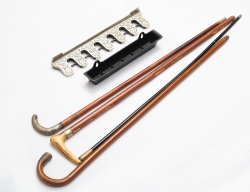 Eskilstuna, gjutjärn och vitmetall, längd 44, 4 promenadkäppar tidigt 1900-tal, varav 3 med silverhandtag, längd 90 (5)