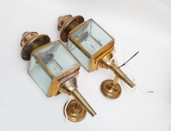 Kirby Beards & Co Paris, höjd 8,5, portkläpp i form av lejon, mässing, höjd 19, väggkrok i form av delfin, "Lan-Bar", förgylld metall, höjd 11, lyktor 1 par, mässing/glas, höjd 40