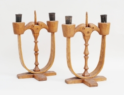 "Elis i Tasere" Elis Eriksson, tidigt 1900-tal, ek, ljushållare i metall, signerade, höjd 28