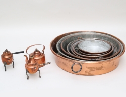 kaffekannor miniatyrer 3 stycken, 1800-tal/tidigt 1900-tal, koppar, höjd 9/10, diameter 17-39