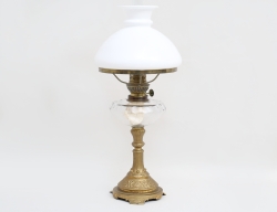 mässing, fasettslipat glas, senare elektrifierade, höjd 43