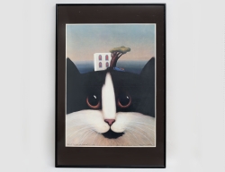 affisch "Les yeux qui cherchent" (ögon som söker), signerad med blyerts samt med dedikation, rammått 91x61