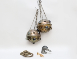 koptiska/ortodoxa, mässing, de två större 1800-tal, de mindre 1900-tal, höjd 37, 33, 21, 18,5