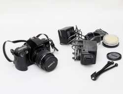 kamera, objektiv 35-80mm, diverse tillbehör, originalkartong, ej funktionstestad
