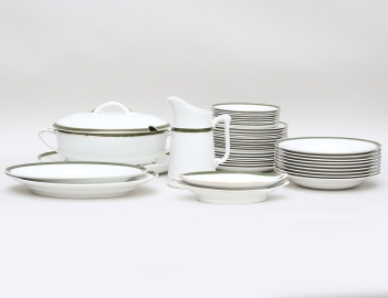 grön och förgylld kantdekor, bla. terrin med lock och fat, 7 mattallrikar, 9 djupa tallrikar, 10 tallrikar, diameter 17-24,5 (smärre bruksslitage)