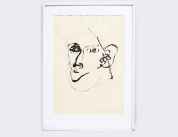 tuschteckning, "Karen Blixen", signerad, 56x40, rammått 72x52
